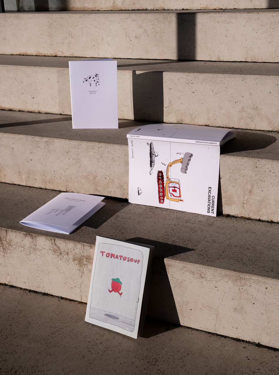 This project is part of my Master’s thesis, which explores the theme of nonsense narratives. Alongside it, the thesis includes several other creative experiments, each investigating how humor, nonsense and playful language can create new narratives. The projects include Current Excavations, a book of exploratory illustrations; One Point Five, a short film born from random words and images; Rhetorik am Stuhl, a pocket book that visualizes rhetorical devices through chairs and Tomatosoup, a comic about rivalry. Together, these works form a comprehensive exploration of visual and linguistic nonsense, combining illustration, animation, comics, design, and playful experimentation.